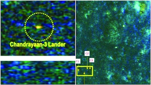 The Indian Space Research Organisation (ISRO) on Saturday released the images of Chandrayaan-3 lander taken by the Dual-frequency Synthetic Aperture Radar (DFSAR) instrument onboard the Chandrayaan-2 Orbiter.