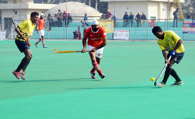 In the second quarterfinal, Punjab blanked Tamil Nadu by six goals to nil (6-0). For Punjab, Satwinder Singh scored the first goal in 4th minute of the match. Then after a gap of 18 minutes, Punjab managed to score three back to back goals in 22nd, 27th and 29th minutes through Gurbaj Singh, Amit Sandhu and Ajay Kumar respectively to make it 4-0 in their favour in the first half. Jagmeet Singh scored two goals in the second half in 54th and 70th minutes to help his team win by (6-0).