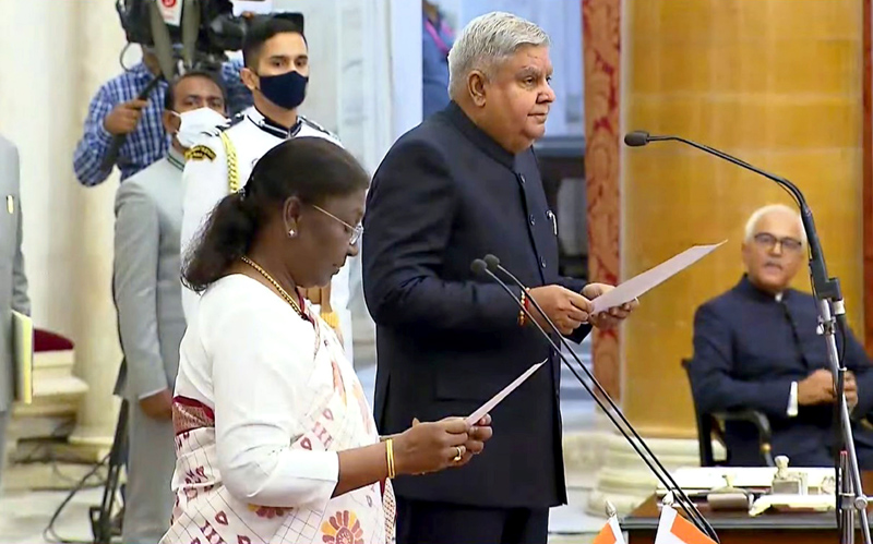 President Droupadi Murmu administered the oath to Dhankhar (71) during a brief ceremony at the Rashtrapati Bhavan.