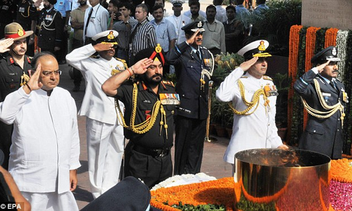 NEW DELHI: Defence Minister Arun Jaitley today paid floral tributes to soldiers who lost their lives during the Kargil War in 1999 at Amar Jawan Jyoti here.