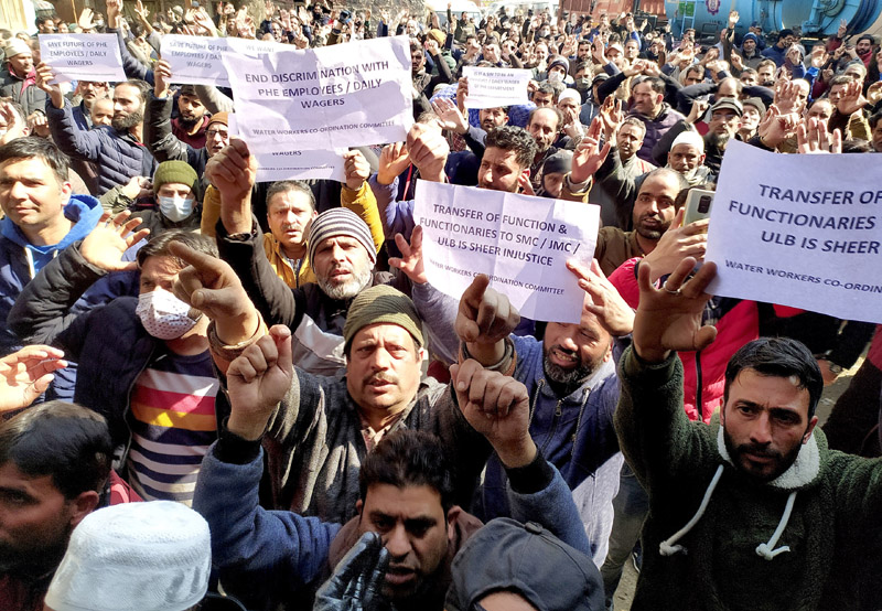 Jal Shakti employees protesting in Srinagar —Excelsior/Shakeel By Daily Excelsior - February 19, 2021 Share FacebookTwitterWhatsAppPinterestLinkedinCopy URLTelegramEmailTumblrReddItPrintKoo Jal Shakti employees protesting in Srinagar —Excelsior/Shakeel Jal Shakti employees protesting in Srinagar —Excelsior/Shakeel Follow our WhatsApp channel