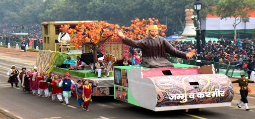 Jammu and Kashmir tableau passing through the saluting dais during the dress rehearsal of Republic Day Parade at Rajpath, New Delhi on Tuesday. (UNI)