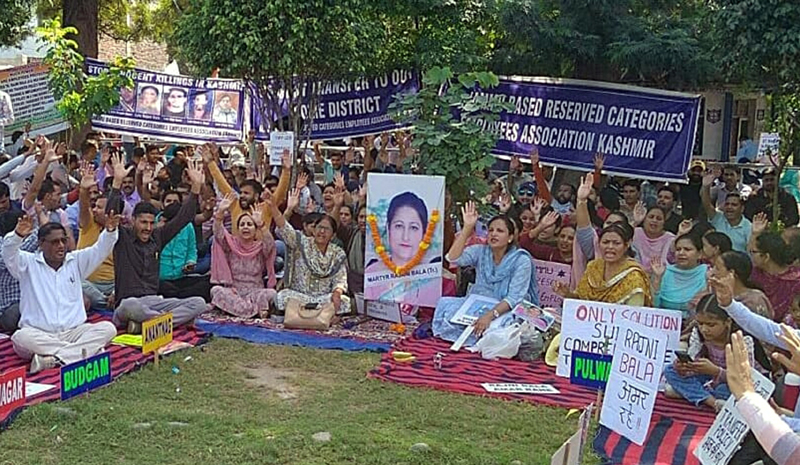 JAMMU, Oct 3: The protest of All Jammu Based Reserve Category Employees’ Association for suitable comprehensive transfer policy entered 125th day, here at Ambedkar Chowk.