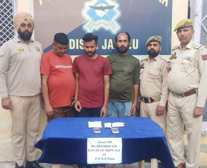 Besides, three more were arrested in linkage with recovery of 13 grams of heroin and two weighing machine and cash of Rs 3050. Police further stated that they achieved a significant breakthrough by apprehending three drug peddlers and recovering 186 grams of heroin in Chak Talab area of R S Pura.