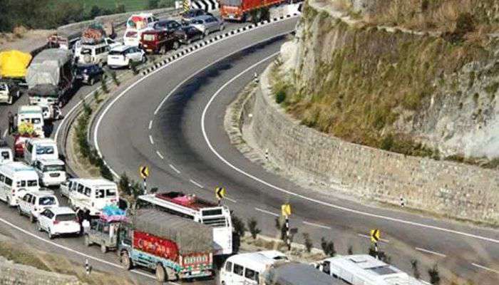 The traffic on the highway is restricted to one-way during the winter months and plies alternatively from Srinagar and Jammu to avoid traffic jam due to ongoing four-laning work.