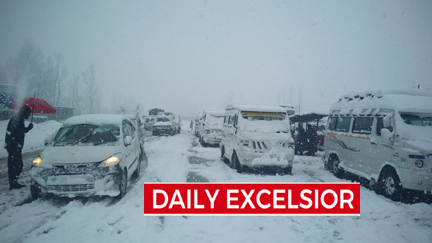 Jammu-Srinagar national highway closed after snowfall; avalanche warning issued for J&K on Monday….Excelsior\Sajad Dar