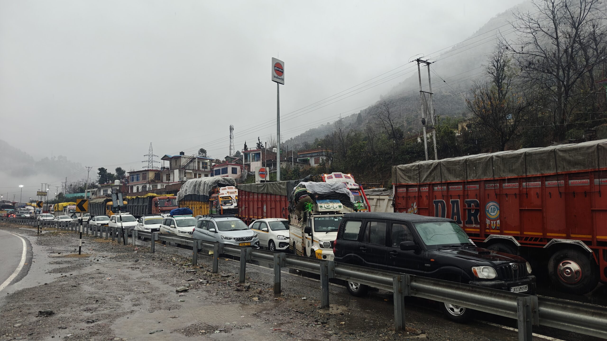 Authorities said that in view of ongoing rains and snow accumulating up to Ramsoo, all types of traffic were halted at safer locations on NH-44 as a precautionary measure because of slippery road conditions.
