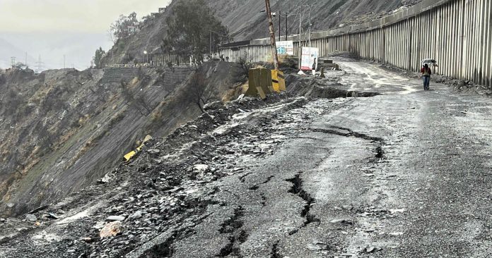 Officials said a side of the road near Mehar has caved in, while a major landslide has blocked one tube of the Kunfer-Peerah tunnel.