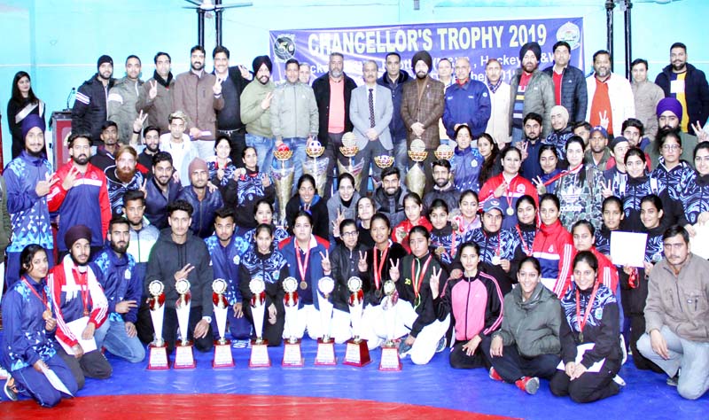 JAMMU, Dec 14: University of Jammu, claimed the Chancellor’s Trophy-2019 title by lifting four titles of Hockey (Men), Football (W), Hockey (W) and Cricket (W), besides one runners-up trophy of Football (M) leaving behind the Cluster University of Kashmir who secured overall 2nd position in the competition by claiming 2 winning and 4 runners-up trophies.