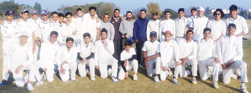 Players of Jammu Vishal Cricket Club and Cricket Academy-24 Panchkula posing for group photograph.