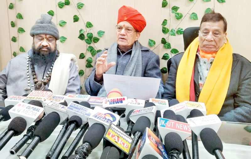Pawan Shastri addressing media persons at Jammu on Tuesday.