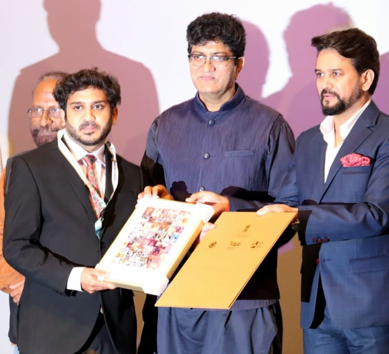Indu Shekhar being felicitated by Union Minister Anurag Thakur at IFFI.