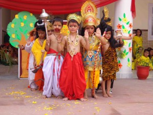 DRS Kids Bantalab celebrated Janamashtami with religious fervour and gaiety. Kids attired in colourful dresses as Krishna and Radha, depicted the teachings of Lord Krishna.