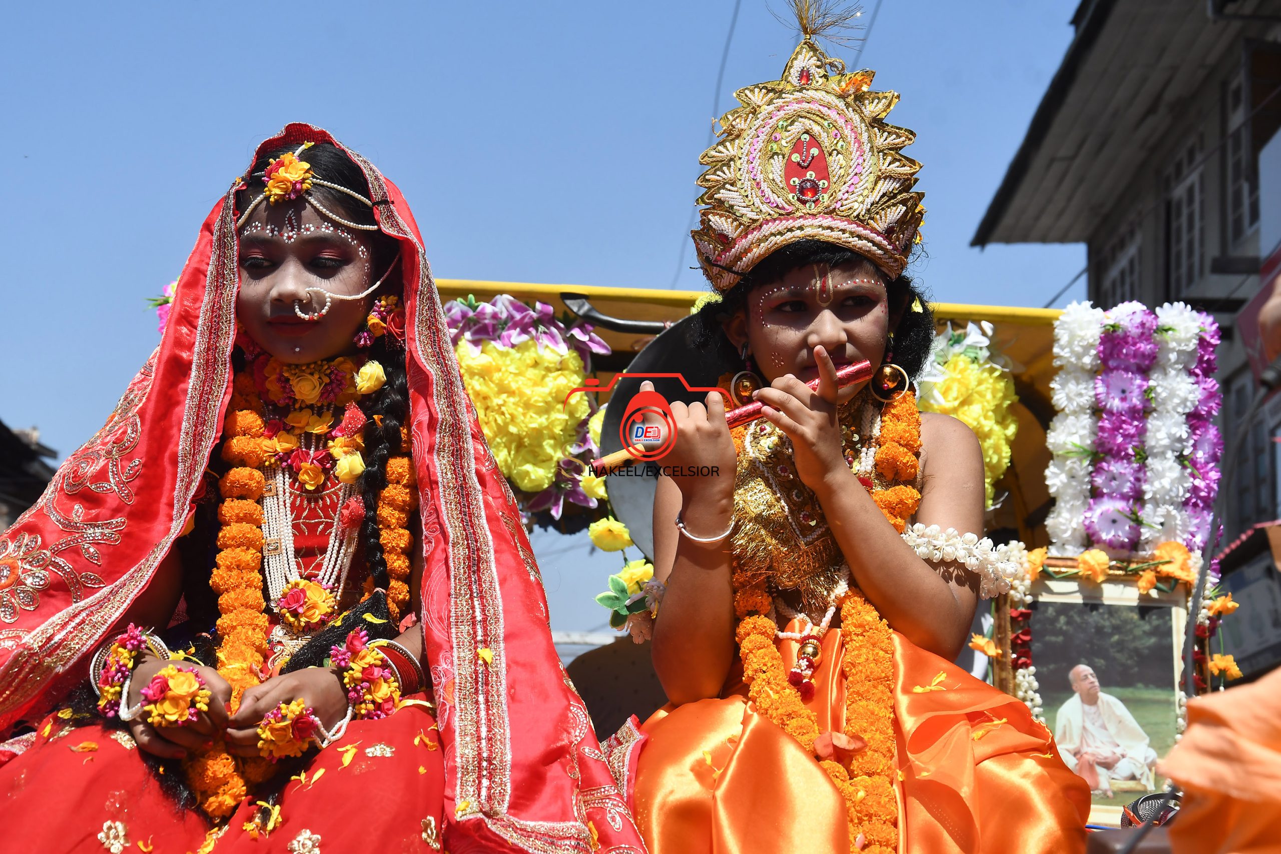 The Yatra with a group of children dressed in traditional attire on a “Jhanki” was taken out from Kathleshwar temple in Tankipora area in Srinagar and passed through the roads of Habbakadal, Ganpathyar, Barbar Shah, Regal Chowk, Lal Chowk, Hari Singh High Street and Jahangir Chowk, amid tight security arrangements.