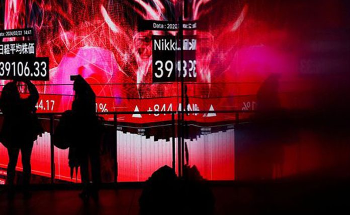 TOKYO, Feb 22 : Japan’s benchmark Nikkei 225 index surged Thursday past the record it set in 1989 before its financial bubble burst, ushering in an era of faltering growth.
