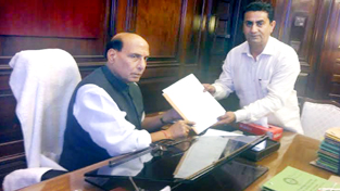 NEW DELHI, Aug 20: In order to provide road connectivity to rural and far flung areas of the Kathua Assembly Constituency, BJP State general secretary and MLA Kathua, Rajiv Jasrotia called on Union Home Minister Rajnath Singh here today and submitted detailed project report under BADP covering several difficulties being faced by far flung and particularly border area people of Kathua Constituency to him.