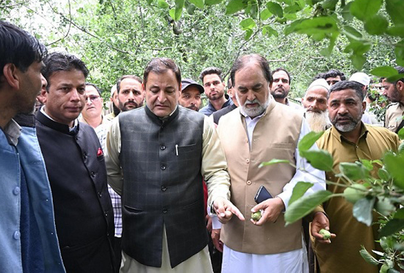SRINAGAR, June 4: Minister for Agriculture Production Department, Rural Development Department & Panchayati Raj, Javid Ahmad Dar, today conducted an extensive visit to the hailstorm-affected areas of Shopian district and the fire-damaged Fruit and Vegetable Mandi in Pulwama.