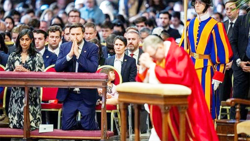On Friday, Vance, his wife and three young children had front-row seats at the Vatican’s Good Friday service in St. Peter’s, a two-hour solemn commemoration featuring Latin and Italian readings. Francis did not attend.