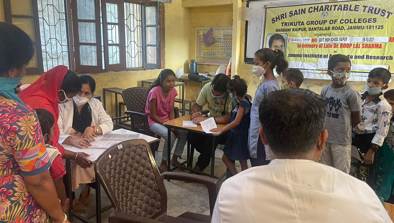 Jammu, Oct 9: In the memory of late Dr. Roop Lal Sharma, to mark his 6th death anniversary today, Jammu Institute of Ayurveda and Research, Jammu organized a free medical camp in Government High School, Raipur along with the distribution of free mask and fruits by Dr. Gursimran, Dr. Poonam Gupta, Dr. Ganesh , Dr. Shakshi and Dr. Rohit.