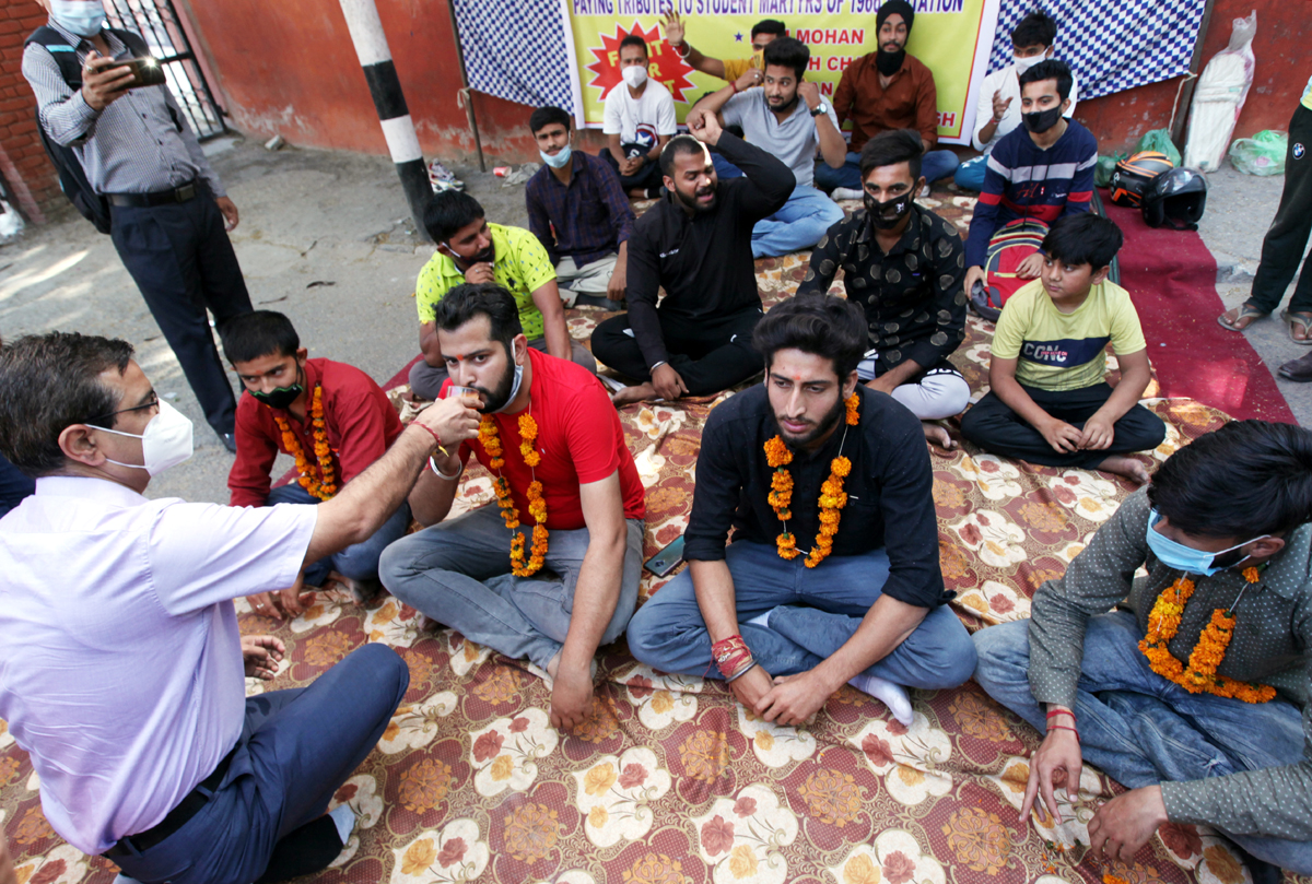Atul Sudan, Vice President JJSF demanded immediate renovation of Shaheedi Sthal. He appealed to the whole student community to get united for a mass movement for students struggling for admissions in Cluster University.