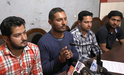 JJSF leaders addressing press conference at Jammu on Tuesday. -Excelsior/Rakesh