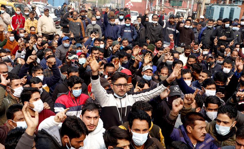 J&K Bank ATM guards during a protest in Srinagar on Wednesday. —Excelsior/Shakeel By Daily Excelsior - November 11, 2021 Share FacebookTwitterWhatsAppPinterestLinkedinCopy URLTelegramEmailTumblrReddItPrintKoo J&K Bank ATM guards during a protest in Srinagar on Wednesday. —Excelsior/Shakeel J&K Bank ATM guards during a protest in Srinagar on Wednesday. —Excelsior/Shakeel Follow our WhatsApp channel