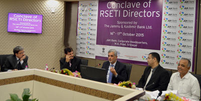 This was stated by Mushtaq Ahmad, Chairman and CEO, J&K Bank today while chairing the inaugural function of “Two-day Conclave of RSETI Directors” held here at the Bank’s Corporate Headquarters. An in-house corporate film on the functioning and the impact of JKB RSETIs was screened on the occasion.