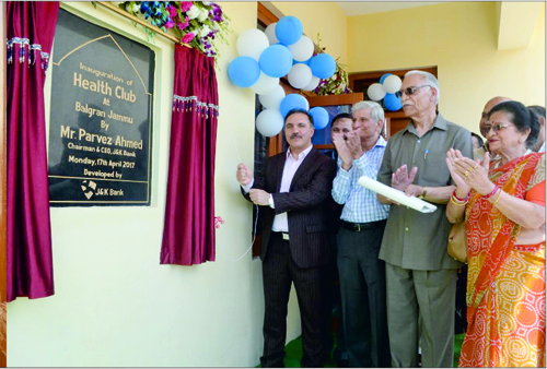 JAMMU, Apr 17: Parvez Ahmed, Chairman & CEO J&K Bank today dedicated a fully equipped Gymnasium cum health club for boys and Indoor Recreation Room for girl children developed by the Bank under its Corporate Social Responsibility initiative at Balgran here today. Balgran a nonprofit and non-government organization, established in 1975 for the care of orphan children, including large number of girls is providing free education and hostel facilities to under privileged children from the state, particularly Jammu region.