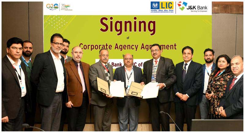 General Manager (Cross Selling Vertical) Narjay Gupta signed the agreement on behalf of J&K Bank, while as, Regional Manager (MBAC) P K Saxena put in his signatures representing LIC India in presence of Bank’s Executive Director Sudhir Gupta, General Manager Syed Rais Maqbool, LIC of India’s Senior Divisional Manager Dinesh Tanania besides senior officials of J&K Bank and LIC of India at Bank’s corporate headquarters. The agreement will be effective from April 1, 2023.