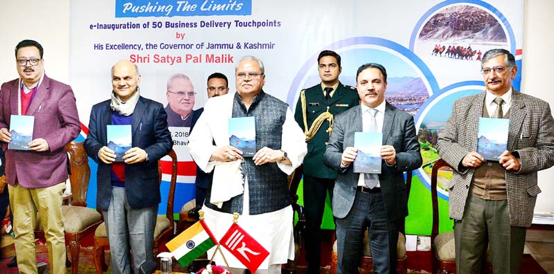 Jammu, Dec 31: Governor Satya Pal Malik today launched and unveiled the J&K Bank Wall Calendar and Diary 2019 at Raj Bhawan in presence of K. K. Sharma. Advisor to Governor; Parvez Ahmed, Chairman & CEO, J&K Bank; Umang Narula, Principal Secretary to Governor; Navin Kumar Choudhary, Principal Secretary Finance; and senior management of the Bank.