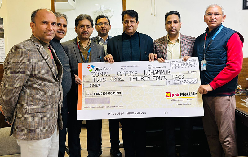 J&K Bank’s Zonal Head (Udhampur) Rajesh Gupta handing over symbolic cheque to the nominees/legal heirs of the deceased customers on Monday. By Daily Excelsior - March 19, 2024 Share FacebookTwitterWhatsAppPinterestLinkedinCopy URLTelegramEmailTumblrReddItPrintKoo J&K Bank's Zonal Head (Udhampur) Rajesh Gupta handing over symbolic cheque to the nominees/legal heirs of the deceased customers on Monday. Follow our WhatsApp channel