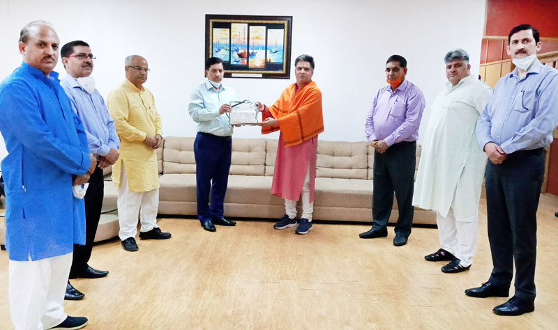 J&K BJP president, Ravinder Raina along with BJP general secretary (Org.), Ashok Kaul, BJP general secretary, Dr. Devinder Kumar Manyal, Mayor JMC Chander Mohan Gupta and BJP incharge Social & Religion Organizations, Narain Singh handed over the cheques worth Rs. one crore to R. K. Chhibber, Chairman J&K Bank at Zonal Headquarter, Bahu Plaza Jammu. Bank vice-president, Sharish Sharma and Vice-President, Zonal Head Jammu, Sunit Kumar were also present on the occasion.