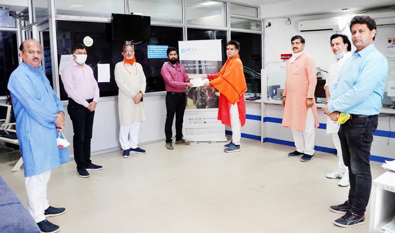 BJP J&K president Ravinder Raina accompanied by MP (Lok Sabha) Jugal Kishore Sharma, former Deputy CM Kavinder Gupta, BJP general secretaries Sunil Sharma (former Minister), Vibodh Gupta (former MLC) and Dr Devindar Kumar Manyal (former Minister) and party programme & abhiyaan coordinator Ajay Pargal and additional protocol secretary Shailender Vaid handed over bank cheques worth Rs 50,00,779 to the Manager, State Bank of India at Trikuta Nagar Branch, Jammu while till date more than Rs 50 lakh have already been donated via online transactions by BJP workers and party supporters to the PM Cares Fund.