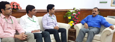 NEW DELHI, Oct 6: 2014 batch of IAS officers, who have been allocated J&K cadre, called on Union Minister of State (Independent Charge) for Development of North Eastern Region (DoNER), MoS PMO, Personnel, Public Grievances, Pensions, Atomic Energy and Space, Dr Jitendra Singh here today to pay their respects and seek his guidance before leaving for the State for formal posting.