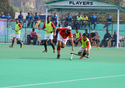 Jammu and Kashmir players dominated the game from the word go and succeeded in scoring their first goal through Satwant Singh early in the 14th minute of the match. Satwant scored the second goal also in 18th minute, which was followed by another goal in 20th minute by Sikinder Pal Singh to help J&K lead the first half by three goals to nil (3-0).