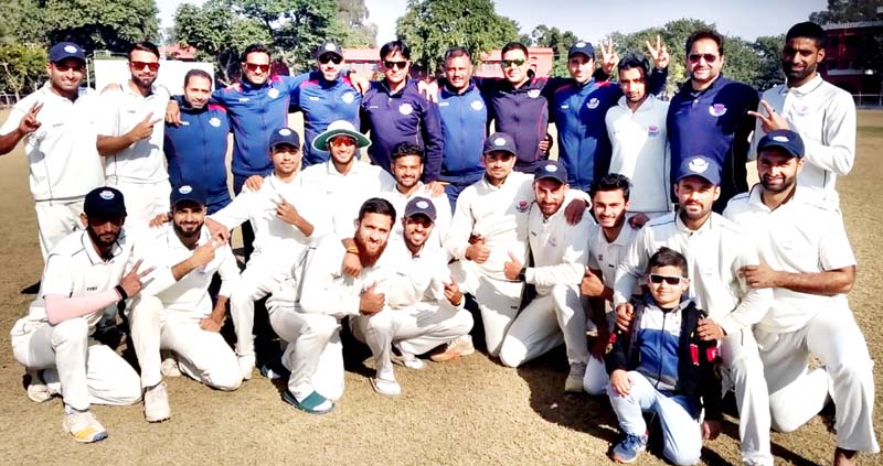 J&K U-23 Cricket Team posing for a group photograph along with the support staff after beating Chhattisgarh at GGM Science Collage hostel ground in Jammu on Thursday.