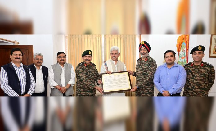 SRINAGAR, May 17: Lt Gen Gurbirpal Singh, Director General, National Cadet Corps today called on Lieutenant Governor Manoj Sinha at Raj Bhawan. He was accompanied by Maj Gen Rajesh Kumar Sachdeva, ADG, NCC Directorate, J&K and Ladakh.