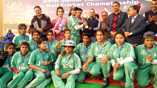 J&K eves posing for a group photograph after winning 2nd place in 24th Junior National Tennis Ball Cricket Championship.
