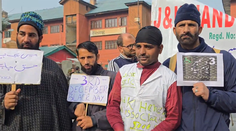 Srinagar, Dec 3: The Jammu and Kashmir Handicapped Association (JKHA) observed World Disability Day on Tuesday as a “black day,” and urged the state government to improve the welfare of the disabled community in the region.