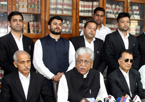 J&K High Court Bar Association Jammu president S S Slathia and other members at a press conference at Jammu on Wednesday. -Excelsior/Rakesh