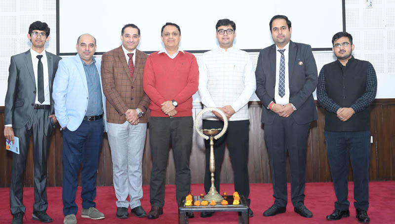 Chairman of ICAI J&K Branch Vikas Purdhani posing with other members during a seminar at Jammu.