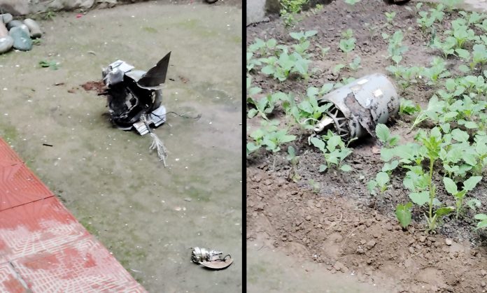 The explosions caused panic and debris of a missile fell near the house of one Ghulam Mohidin Bhat son of Abdul Aziz Bhat of Lasjan in the outskirts of Srinagar.