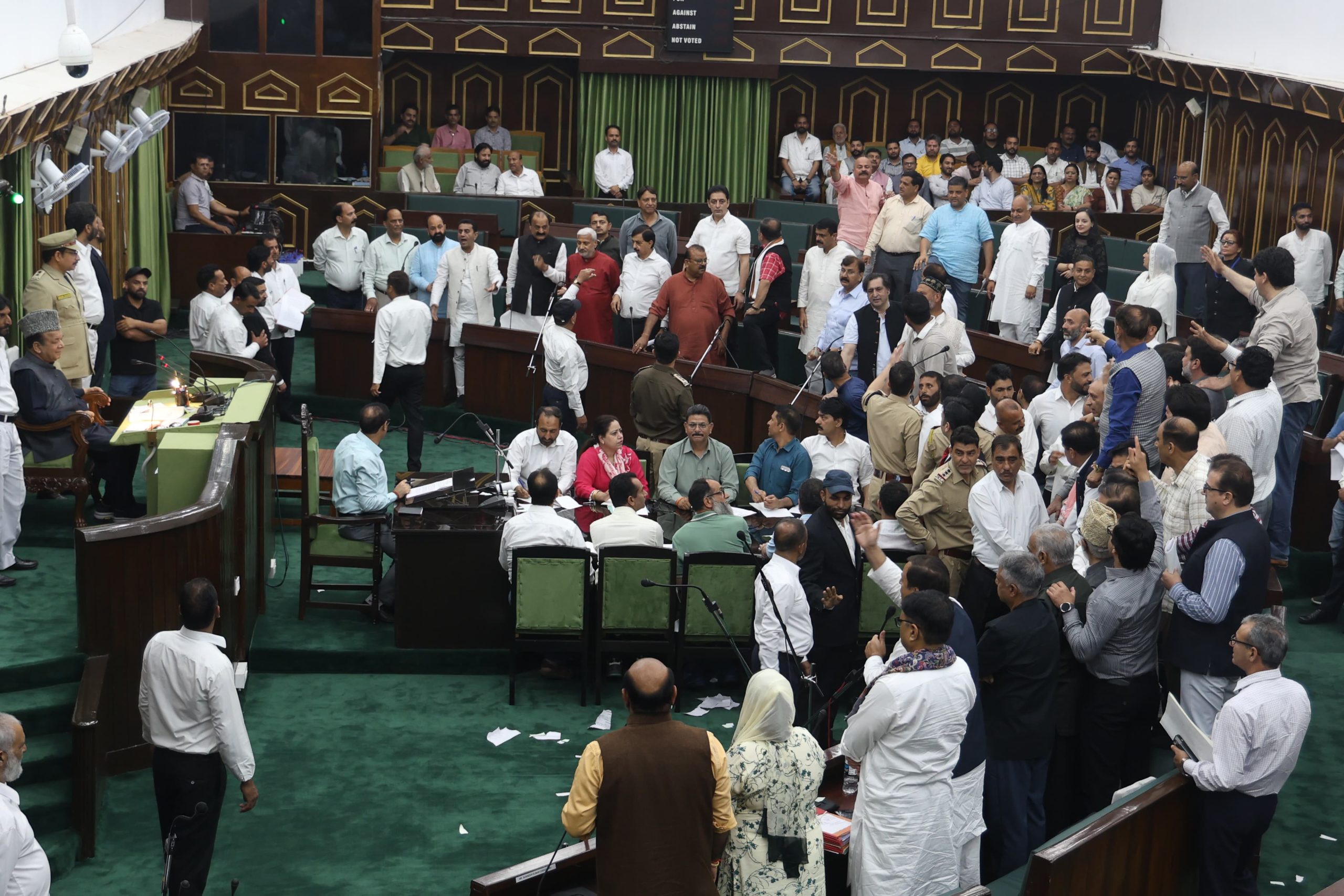 However, BJP member Sham Lal Sharma and Peoples Conference member Sajad Lone told the protesting treasury benches to bring a no-confidence motion to remove the Speaker.