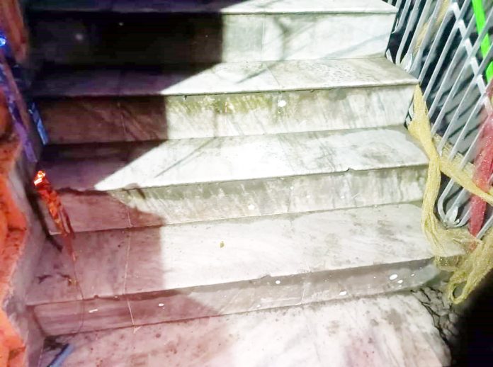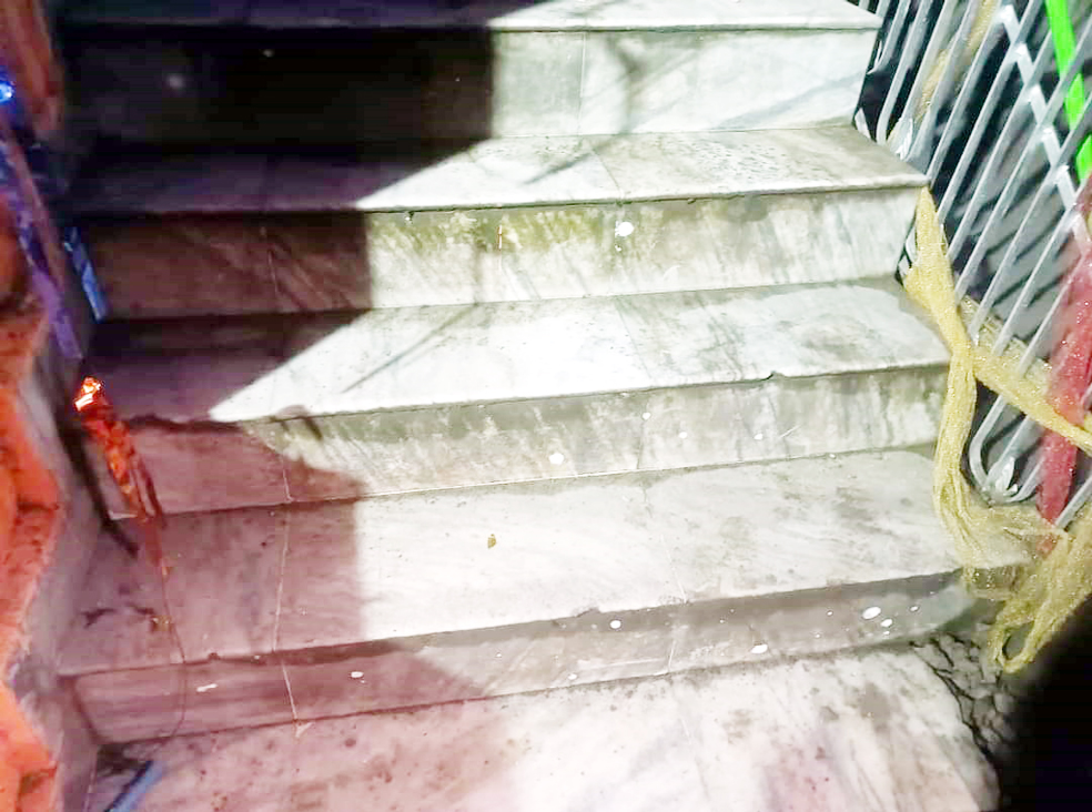 Minor damage caused to stairs of the building during mysterious blast on late Wednesday evening.