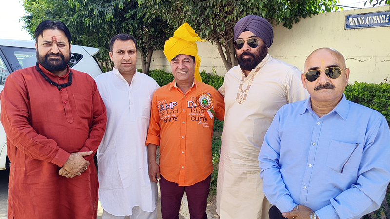 Newly appointed chairman of J&K NRI Association Ajay Mathur posing with president Jasvinder Singh Kuku and others.
