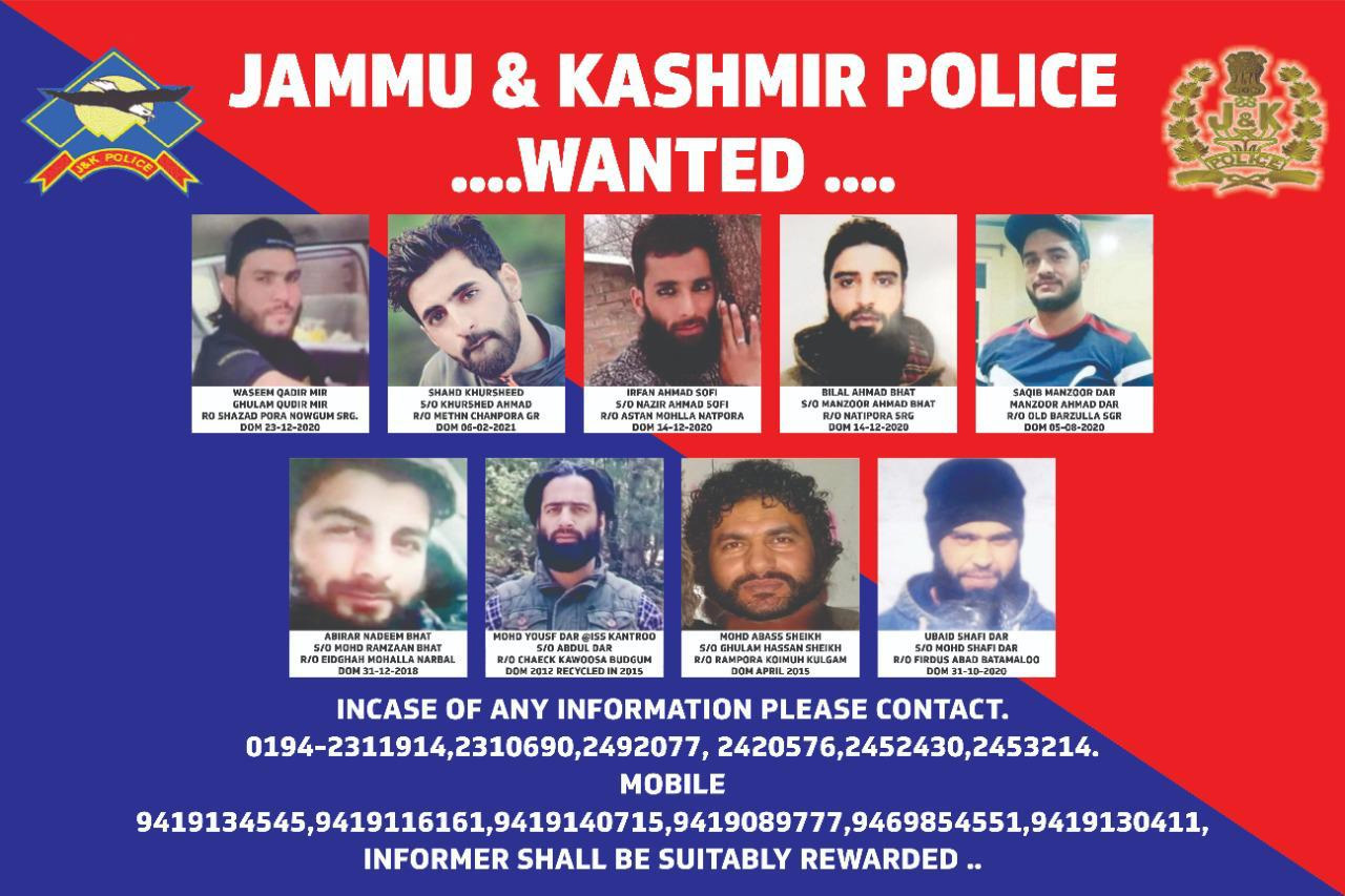 The list, identifies the militants as; Waseem Qadir Mir of Shahzadpora, Nowgam Srinagar (Joining date December 20, 2020) Shahid Khursheed resident of Methan, Chanapora (Joining date February 6, 2021), Irfan Ahmed Sofi of Astan Mohalla, Natipora, (Joining date December 14, 2020), Bilal Ahmed Bhat of Natipora, (Joining date February 14, 2020), Saqib Manzoor Dar of Old Barzulla, Srinagar, (Joining date August 5, 2020), Abirar Nadeem Bhat of Eidgah, Mohalla, Narbal (Joining date December 12, 2018), Muhammad Yousuf Dar alias Iss Kantroo, a recycled militant who joined the ranks twice in 2012 and again in 2015, Muhammad Abbas Sheikh of Rampora Koimoh, Kulgam (Joining date April 2015) besides Ubaid Shafi Dar of Firdousabad, Batamaloo, Srinagar joining the ranks on October 31, 2020.