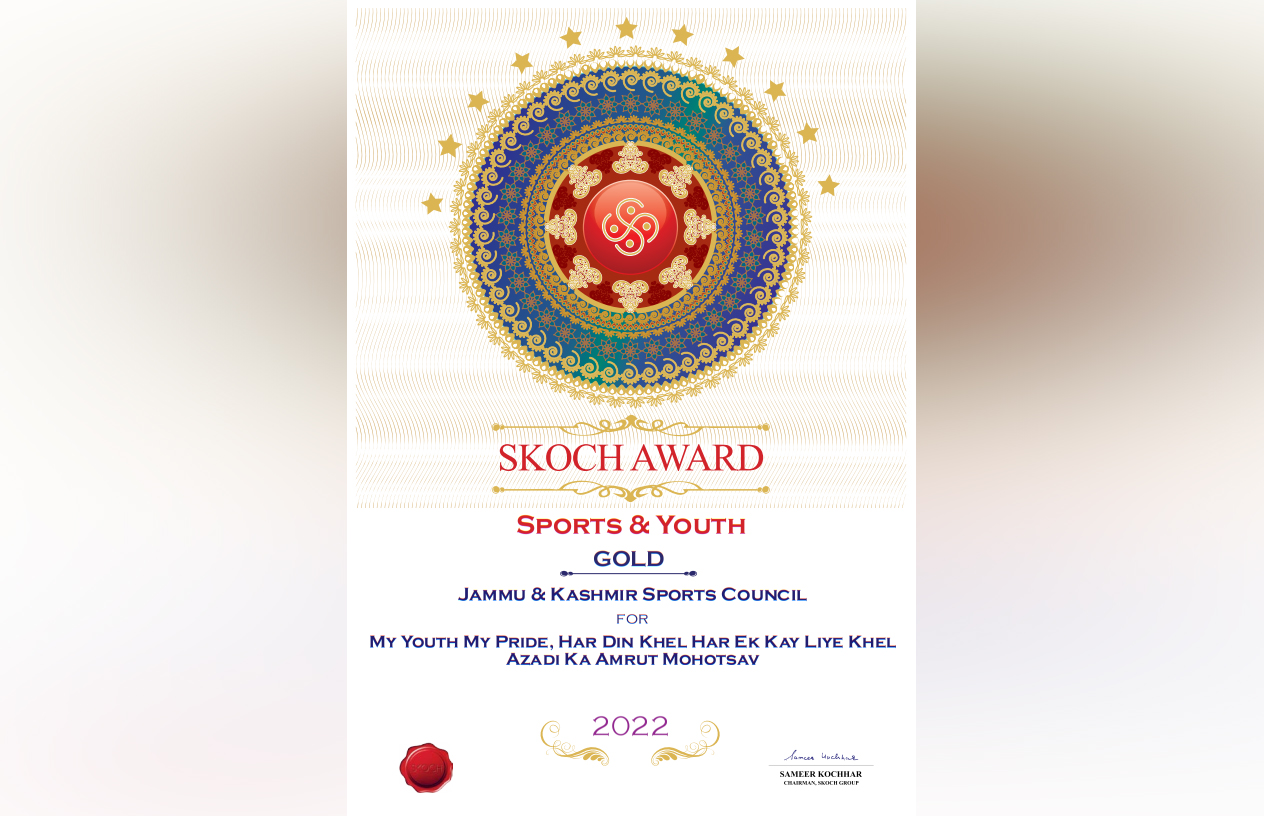 Secretary J&K Sports Council, Nuzhat Gul, has made a significant contribution towards the promotion of sports. She has been recognised with the SKOCH Award for her services and contributions in the creation, upkeep, and organisation of competitions and high-profile events, stated Dr. Gursharan, Managing Director, while announcing the awards.