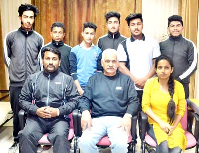 State Sports Target Ball team posing for a group photograph alongwith dignitaries in Jammu.