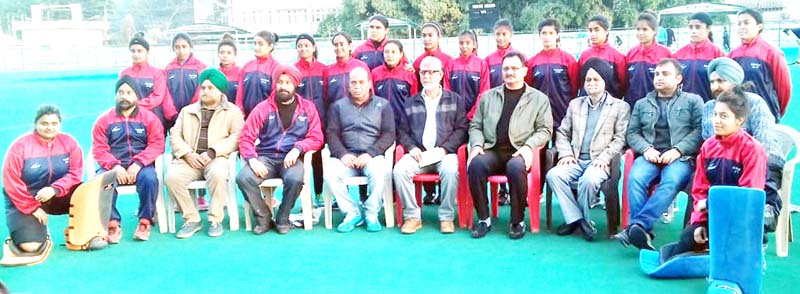 J&K Women Hockey team posing for group photograph before leaving for Senior Nationals.