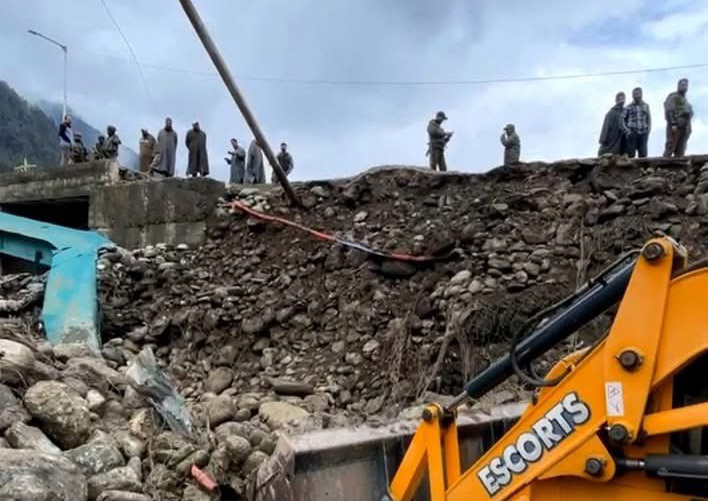 A portion of the retention wall near the Pahalgam taxi stand collapsed due to incessant rain, they said.